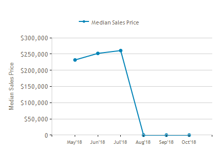 Home sales for June 2018 were down 34% compared with the previous month, and up 240% compared with a year ago. The median sales price of a non-distressed home was $252,263. The median sales price of a foreclosure home was $0, or 0% higher than non-distressed home sales.